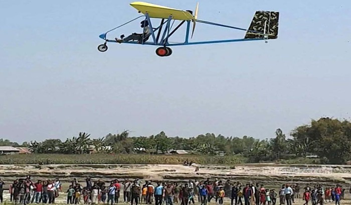 চার বছরের চেষ্টায় নিজের তৈরি বিমানে আকাশে উড়লেন ইলেকট্রিক মিস্ত্রি জুলহাস মোল্লা (২৮)।
