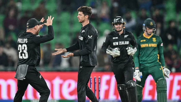 দক্ষিণ আফ্রিকা : ৫০ ওভারে ৩১২/৯ (রিকেলটন ১৭, বাভুমা ৫৬, ডুসেন ৬৯, মার্করাম ৩১, ক্লাসেন ৩, মিলার ১০০*, মাল্ডার ৮, জেনসেন ৩, মহারাজ ১, রাবাদা ১৬, লুঙি ১* ; হেনরি ৭-০-৪৩-২, জেমিসন ৭-১-৫৭-০, ও’রোর্ক ৮-০-৬৯-০, ব্রেসওয়েল ১০-০-৫৩-১, স্যান্টনার ১০-০-৪৩-৩, রাচিন ৫-০-২০-১, ফিলিপস ৩-০-২৭-২)