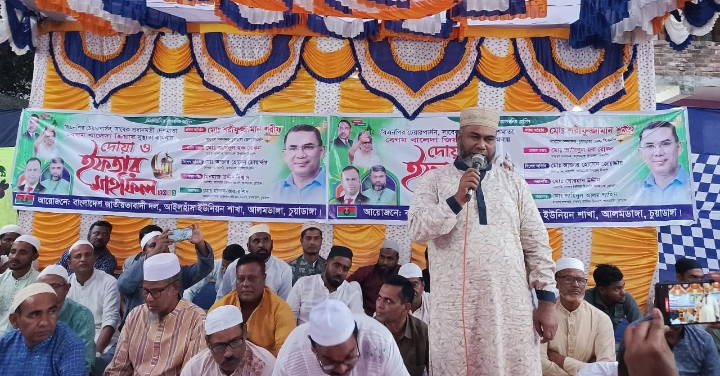 নিজস্ব প্রতিবেদকঃ পবিত্র মাহে রমজান উপলক্ষে চুয়াডাঙ্গার আলমডাঙ্গা উপজেলার আইলহাস ও নাগদাহ ইউনিয়ন বিএনপির উদ্যোগে এক দোয়া ও ইফতার মাহফিল অনুষ্ঠিত হয়েছে। রবিবার (৯ মার্চ) ঘোলদাড়ি ফুটবল মাঠ প্রাঙ্গণে আয়োজিত এ মাহফিলে সাবেক প্রধানমন্ত্রী ও বিএনপি চেয়ারপারসন বেগম খালেদা জিয়ার সুস্বাস্থ্য ও দীর্ঘায়ু কামনায় বিশেষ মোনাজাত করা হয়।