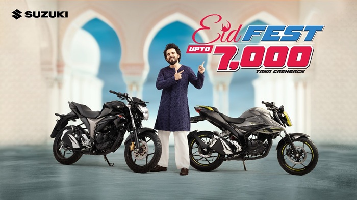 নিজস্ব প্রতিবেদকঃ পবিত্র ঈদ-উল-ফিতর উপলক্ষে সুজুকি বাংলাদেশ নিয়ে এসেছে বিশেষ উৎসব অফার ‘সুজুকি ঈদ ফেস্ট’। এর আওতায় ক্রেতারা সীমিত সময়ের এই অফারে সুজুকির বিভিন্ন জনপ্রিয় মডেলের মোটরসাইকেলের ওপর সর্বোচ্চ ৭,০০০ টাকা পর্যন্ত ক্যাশব্যাক উপভোগ করতে পারবেন। ঈদের আনন্দকে আরও রঙিন ও উপভোগ্য করে তুলতেই মোটরসাইকেলপ্রেমীদের জন্য সুজুকির এই আকর্ষণীয় অফার।
