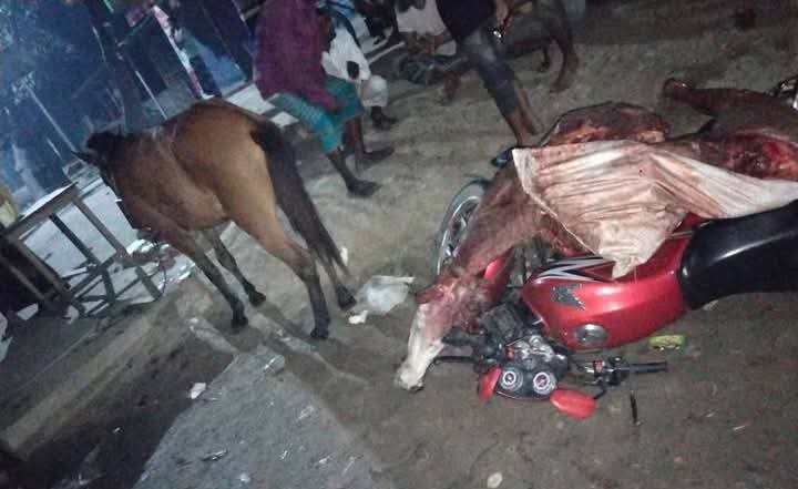 হরিপুর (ঠাকুরগাঁও) প্রতিনিধিঃ ঠাকুরগাঁওয়ের হরিপুরে গভীর রাতে ভুট্টা ক্ষেতে গোপনে ঘোড়া জবাই করে গরুর মাংস বলে বিক্রি করার চেষ্টা করলে বিষয়টি গ্রামবাসিরা জানতে পারলে তাদের ধরার জন্য ভুট্টা ক্ষেত ঘেরাও করলে প্রতারক কসাই পালিয়ে যায়।
