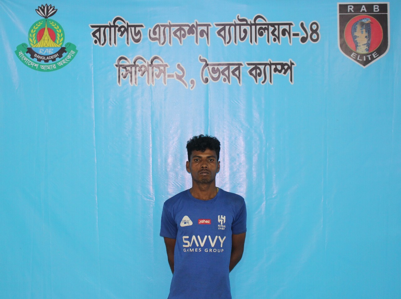 গ্রেফতারকৃত হলেন ভৈরব উপজেলার আগানগর এলাকার মৃত গাজী মিয়ার ছেলে সুলমান মিয়া(৩৩)