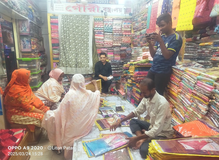 সেই সাথে পাল্লা দিয়ে চলছে দর্জি দোকান গুলোতেও গ্রাহকের রুচি আর পছন্দের পোশাক আর আধুনিকতা সাথে তাল মিলিয়েই নিত্য নতুন পোশাক তৈরিতেই এখন তাদের মনোযোগ। কখনও সালোয়ার কামিজ বা কখনো পাঞ্জাবী তৈরিতে মেশিনে অবিরত চলছে খরখর শব্দে দর্জি কারিগরেরা কর্মব্যস্ত। ঈদ আনন্দে ধনী-গরিব, নারী-পুরুষ ছোট বড় সকলে নতুন নতুন জামা কাপড় পরিধান করে থাকে। মিজানুর রহমান ট্রেইলার্স বলেন, রোজার কয়েকদিন আগে থেকেই গ্রাহকদের কাছ থেকে অর্ডার পাওয়া শুরু হয়। যুগের সাথে তাল মিলিয়ে আধুনিক ফ্যাশন ডিজাইনের পোশাক বানানোর কারণে ক্রেতারা এখানে আসেন এই ঈদে বাড়তি চাপ থাকে।