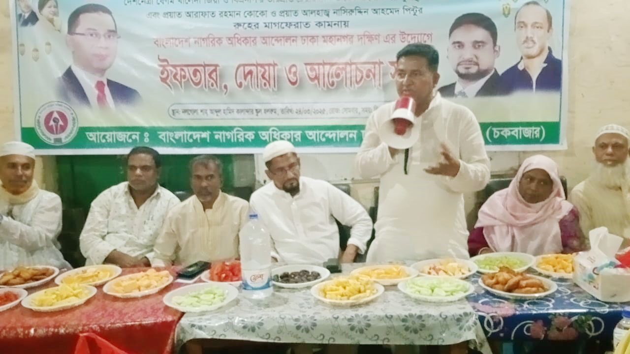 বাংলাদেশ নাগরিক অধিকার আন্দোলন ঢাকা মহানগর দক্ষিণের সাধারণ সম্পাদক মোঃ মুসা ফরাজির সভাপতিত্বে আরো উপস্থিত ছিলেন প্রধান বক্তা সাবেক কাউন্সিলর হাজী মোঃ হুমায়ুন কবির, বিশেষ অতিথি ঢাকা মহানগর দক্ষিণ বিএনপির সদস্য সাবেক কাউন্সিলর শামছুর নাহার ভুইয়া, বাংলাদেশ নাগরিক অধিকার আন্দোলনের সদস্য সচিব ইঞ্জিনিয়ার মোফাজ্জেল হোসেন হৃদয়, কেন্দ্রীয় কমিটির যুগ্ম আহবায়ক শফিকুল ইসলাম সবুজ, চকবাজার থানা বিএনপি নেতা হাজী মোঃ ইলিয়াস, মোতাহার হোসেন, দেওয়ান মজিবর সোহেল, কানিজ ফাতেমা, সাইফুল ইসলাম হাসু, সুমন হোসেন, অপু দাস, মাহফুজ আহমেদ মিজান, বরকত উল্লাহ কালু, আমির, দানেশ, সিরাজুল ইসলাম, অহিদুল ইসলাম, আরিফ হোসেন বারেক, মোঃ জাকির হোসেন, জামাল সরদার, রফিক মোহাম্মদ আলী, তারেক, রাসেল, আকাশ, জাহাঙ্গীর, রুহুল আমিন প্রমুখ।