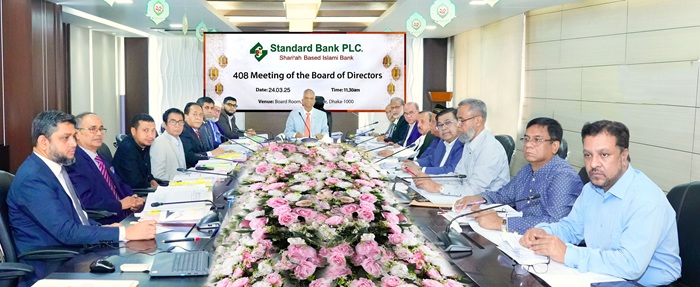 নিজস্ব প্রতিবেদকঃ শরি‘আহ্ ভিত্তিক স্ট্যান্ডার্ড ব্যাংক পিএলসি. এর পরিচালনা পর্ষদের ৪০৮তম সভা, ২৪ মার্চ ২০২৫ তারিখে ঢাকায় ব্যাংকের প্রধান কার্যালয়ের বোর্ডরুমে অনুষ্ঠিত হয়।