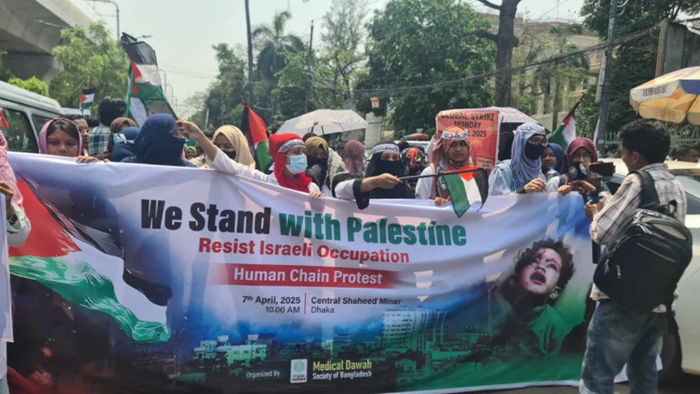আজ সোমবার (৭ এপ্রিল) সকাল থেকেই শাহবাগে জড়ো হতে থাকে রাজধানীর বিভিন্ন সরকারি-বেসরকারি কলেজ, বিশ্ববিদ্যালয়, মেডিকেল কলেজ, নার্সিং কলেজ ও ডেন্টাল কলেজের শিক্ষার্থীরা। এই সময় ‘ফ্রি প্যালেস্টাইন’ স্লোগানে মুখরিত হয়ে ওঠে গোটা শাহবাগ।