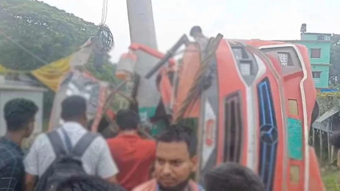 ফায়ার সার্ভিস জানায়, টেকেরহাট থেকে ছেড়ে আসা ফরিদপুরগামী হাই ডেক্স নামের বাসটি নিয়ন্ত্রণ হারিয়ে রাস্তার খাদে পড়ে যায়।