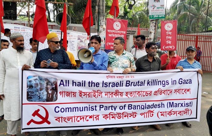 নিজস্ব প্রতিবেদকঃ আজ ৮ এপ্রিল মংগলবার দুপুর ২ টায় বাংলাদেশের কমিউনিস্ট পার্টি (মার্কসবাদী) উদ্যোগে গাজায় ইসরায়েলি গনহত্যার প্রতিবাদে জাতীয় প্রেসক্লাবের সামনে সমাবেশ ও বিক্ষোভ মিছিল অনুষ্ঠিত হয়।