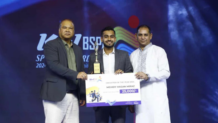 বর্ষসেরা ক্রিকেটারের মুকুটও ওঠে মিরাজের মাথায়। ২০২৪ সালে ব্যাট-বল হাতে মিরাজ ছিলেন অনবদ্য। বিশেষত, টেস্টে। সাদা পোশাকে পাকিস্তানকে তাদের মাটিতে হোয়াইটওয়াশ করা সিরিজে তার অবদান ছিল অসাধারণ। যার স্বীকৃতি হিসেবে দ্বিতীয়বারের মতো ’কুল বিএসপিএ’-র বর্ষসেরার খেতাব জেতেন মিরাজ।