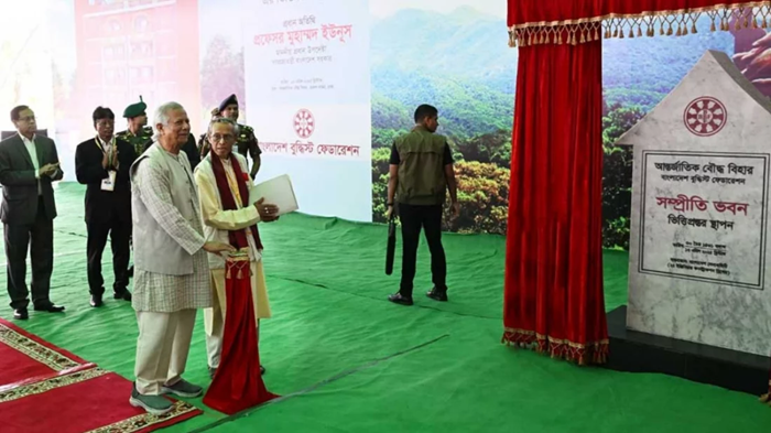 অনুষ্ঠানে ইউনূস বলেন, 'বৈশাখের প্রাক্কালে এই ‘সম্প্রীতি ভবন’-এর ভিত্তিপ্রস্তর স্থাপন একটি গুরুত্বপূর্ণ বার্তা বহন করে। আমাকে আমন্ত্রণ জানিয়ে অংশগ্রহণের সুযোগ করে দেওয়ায় আন্তর্জাতিক বৌদ্ধ বিহার ও বাংলাদেশ বুদ্ধিস্ট ফেডারেশনকে ধন্যবাদ জানাই। একই সঙ্গে সবাইকে জানাই বাংলা নববর্ষের অগ্রিম শুভেচ্ছা।'