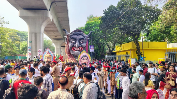 বাংলা নববর্ষ ১৪৩২ উদযাপন উপলক্ষ্যে ঢাকা বিশ্ববিদ্যালয়ের (ঢাবি) চারুকলা অনুষদের সামনে থেকে আনন্দ শোভাযাত্রা শুরু হয়েছে। সোমবার (১৪ এপ্রিল) সকাল ৯টার দিকে শোভাযাত্রাটি বের হয়।