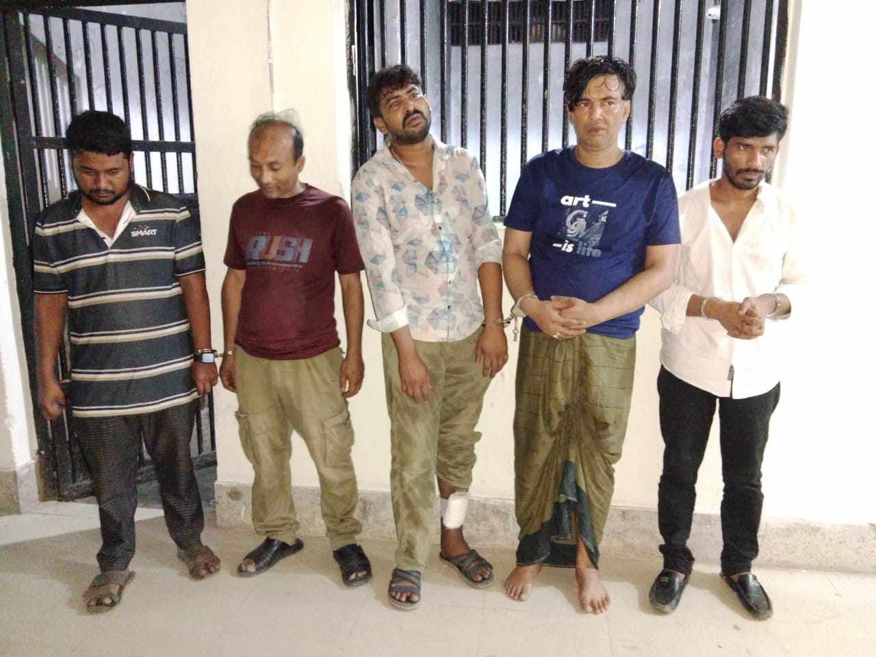 গ্রেপ্তারকৃতরা হলো পৌর শহরের ভৈরবপুর উত্তরপাড়া এলাকার বিল্লাল মিয়ার ছেলে আনোয়ার হোসেন (৩০), একই এলাকার মৃত তাইফ উদ্দিনের ছেলে মাহমুদুল হাসান সুমন (৪৫), মৃত মন্টু মিয়ার ছেলে মো. জীবন মিয়া (৩২), মোতালেব মিয়ার ছেলে মো. মুরাদ মিয়া (৩৫) ও আব্দুর রাজ্জাকের ছেলে মোহাম্মদ জুয়েল রানা (২৯)।