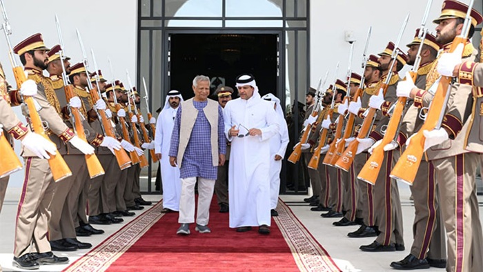 প্রধান উপদেষ্টা অধ্যাপক মুহাম্মদ ইউনূসকে কাতারের সশস্ত্র বাহিনী আনুষ্ঠানিকভাবে গার্ড অব অনার প্রদান করেছে।