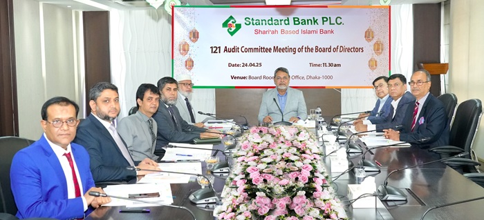 নিজস্ব প্রতিবেদকঃ স্ট্যান্ডার্ড ব্যাংক পিএলসি. এর অডিট কমিটির ১২১তম সভা ২৪ এপ্রিল ২০২৫ তারিখে ঢাকায় ব্যাংকের প্রধান কার্যালয়ের বোর্ডরুমে কমিটির চেয়ারম্যান খন্দকার রুমী এহসানুল হক-এর সভাপতিত্বে অনুষ্ঠিত হয়।