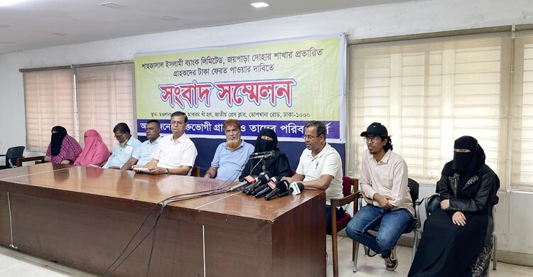 নিজস্ব প্রতিবেদক: ভুয়া রশিদের মাধ্যমে গ্রাহকদের ৩ কোটি টাকা নিয়ে পালানোর অভিযোগ উঠেছে ঢাকা জেলার দোহার উপজেলার জয়পাড়া শাখার শাহজালাল ইসলামী ব্যাংকের সাবেক ব্যবস্থাপক শহিদুল ইসলামের বিরুদ্ধে। বৃহস্পতিবার ২৪ এপ্রিল ২০২৫ জাতীয় প্রেসক্লাবে আয়োজিত এক সংবাদ সম্মেলনে এসব অভিযোগ করেন ভুক্তভোগী গ্রাহকরা।