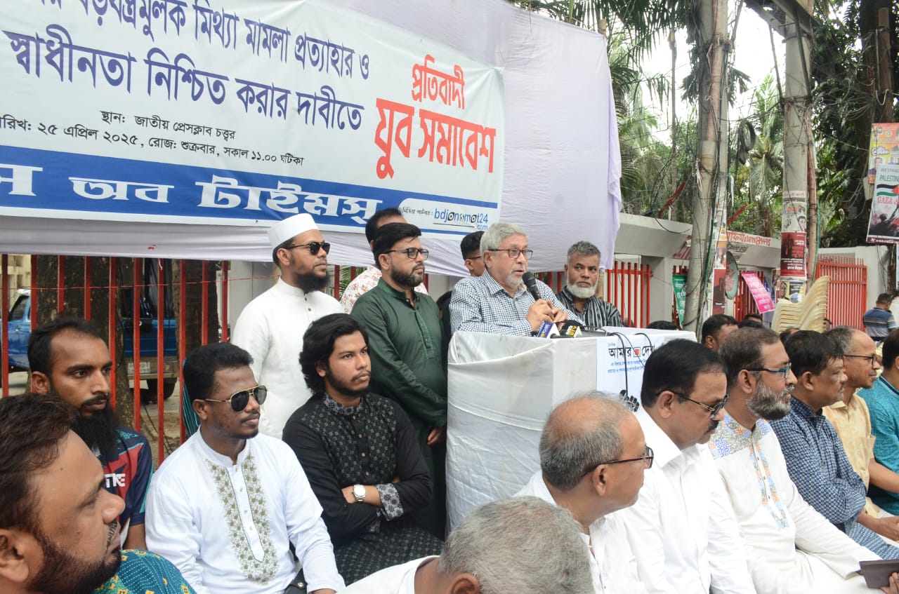 ফ্যাসিবাদ পতনের ভ্যানগার্ড মাহমুদুর রহমান ও আমার দেশের বিরুদ্ধে করা ষড়যন্ত্রমূলক মামলা প্রত্যাহরের ৪৮ ঘণ্টারে আল্টিমেটাম দিচ্ছি। তা না হলে কঠোর আন্দোলন হবে।’