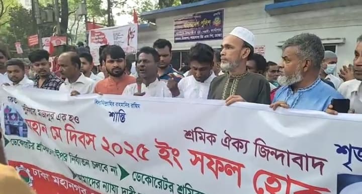 নিজস্ব প্রতিবেদকঃ ঢাকা মহানগর ডেকোরেটর ও কমিউনিটি সেন্টার জাতীয়তাবাদী শ্রমিক দল ১ মে ২০২৫ বৃহস্পতিবার সকাল ৯ টায় জাতীয় ক্রীড়া পরিষদের সামনে থেকে প্রেসক্লাব পর্যন্ত ঢাকা মহানগর ডেকোরেটর ও কমিউনিটি সেন্টার জাতীয়তাবাদী শ্রমিক দল এর নেতৃবৃন্দ র্যারি বের করেছে। র্যালির নেতৃত্ব দিয়েছেন সংগঠনের সভাপতি তোফাজ্জল হোসেন কালু, সাধারণ সম্পাদক মোঃ সুলতান আহমেদ।