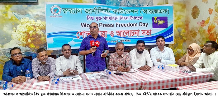 নিজস্ব প্রতিবেদকঃ বিশ্ব মুক্ত গণমাধ্যম দিবস উপলক্ষে রুর্যাল জার্নালিস্ট ফাউন্ডেশন (আরজেএফ)’র উদ্যোগে জাতীয় প্রেসক্লাবের সামনে ৩ মে শনিবার সকাল ১০ টায় শোভাযাত্রা শেষে মানববন্ধন অনুষ্ঠিত হয়। মানববন্ধন শেষে জাতীয় প্রেসক্লাবের সামনে মেট্রো লাউঞ্জ রেস্টুরেন্টে আলোচনা সভা অনুষ্ঠিত হয়।