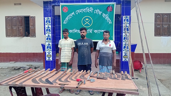 যৌথ বাহিনী সূত্রে জানা যায়, নড়াইলের কালিয়া উপজেলার কলাবাড়িয়া গ্রামে দীর্ঘদিন ধরে চলমান স্থানীয় দ্বন্দ্ব, সংঘাতের সম্ভাবনা এবং অবৈধ অস্ত্র মজুদের স্থানীয় গোয়েন্দা তথ্যের ভিত্তিতে এক সফল অভিযান পরিচালনা করেছে সেনাবাহিনী ও পুলিশ। মধ্যরাতে শুরু হওয়া এই অভিযান থেকে একটি পিস্তল ও বিপুল পরিমাণ দেশীয় অস্ত্র উদ্ধার করা হয়। ঘটনাস্থল থেকে তিনজন গ্রেপ্তার করা হয়েছে।