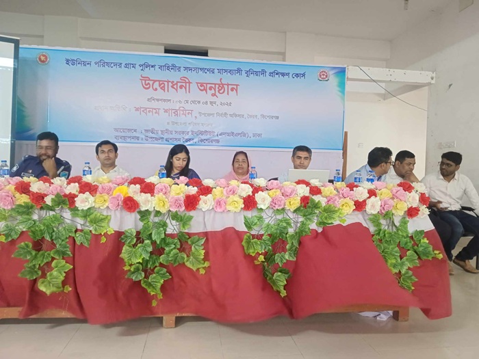 মঙ্গলবার (৬ই মে) দুপুর ১২ টায় ভৈরব উপজেলা হলরুমে ১ মাস ব্যাপী এই প্রশিক্ষণ কোর্সের উদ্বোধন করা হয়। ভৈরব উপজেলার ৭টি ইউনিয়ন থেকে ৪০ জন গ্রাম পুলিশকে এই প্রশিক্ষণ দেয়া হবে। জাতীয় স্থানীয় সরকার ইনস্টিটিউট (এনআইএলজি) আয়োজনে, উদ্বোধনী অনুষ্ঠানে প্রধান অতিথি ছিলেন, উপজেলা নির্বাহী অফিসার শবনম শারমিন , এসময় ভার্চুয়ালি মাসব্যাপী বুনিয়াদি প্রশিক্ষণ কোর্সের শুভ উদ্বোধন করেন।