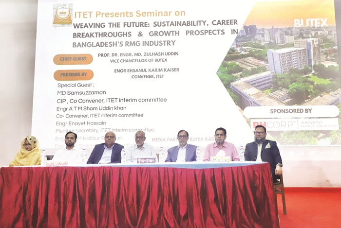 তিনি আজ শনিবার (১৭ মে ২০২৫) বাংলাদেশ টেক্সটাইল বিশ্ববিদ্যালয় (বুটেক্স)-এর অডিটোরিয়ামে দি ইন্সটিটিউশন অব টেক্সটাইল ইঞ্জিনিয়ার্স এন্ড টেকনোলজিস্টস (আইটিইটি), বাংলাদেশের আয়োজনে “উইভিং দ্য ফিউচার: সাস্টেইনেবিলিটি, ক্যারিয়ার ব্রেকথ্রু ও গ্রোথ প্রস্পেক্টস ইন বাংলাদেশ’স আরএমজি ইন্ডাস্ট্রি” বিষয়ক সেমিনারে এসব কথা বলেন।