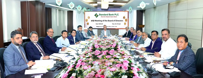 নিজস্ব প্রতিবেদকঃ শরি‘আহ্ ভিত্তিক স্ট্যান্ডার্ড ব্যাংক পিএলসি. এর পরিচালনা পর্ষদের ৪১০তম সভা, ১৯ মে ২০২৫ তারিখে ঢাকায় ব্যাংকের প্রধান কার্যালয়ের বোর্ডরুমে অনুষ্ঠিত হয়।