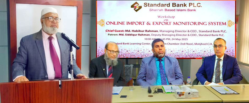 নিজস্ব প্রতিবেদকঃ শরি‘আহ্ ভিত্তিক স্ট্যান্ডার্ড ব্যাংকের বৈদেশিক বাণিজ্য বিভাগের কর্মকর্তাদের দক্ষতা বৃদ্ধিকল্পে ‘অনলাইন ইমপোর্ট অ্যান্ড এক্সপোর্ট মনিটরিং সিস্টেম’ শীর্ষক এক দিনব্যাপী কর্মশালার আয়োজন করেছে স্ট্যান্ডার্ড ব্যাংক পিএলসি.।
