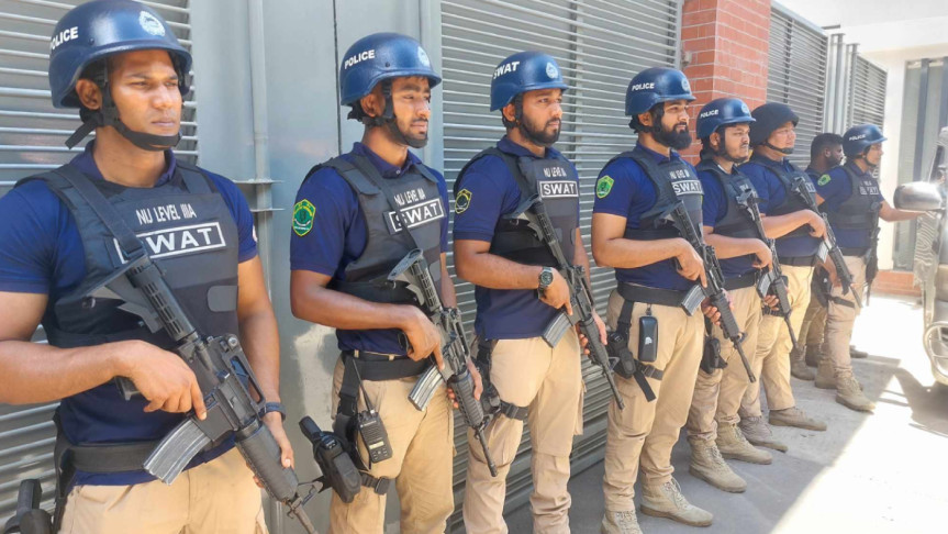 আজ দুপুরে সচিবালয়ের স্বরাষ্ট্র উপদেষ্টার সাথে ভেতরে জুলাই মঞ্চের ১০ সদস্যের প্রতিনিধিদলকে পুলিশ কর্মকর্তারা আলোচনার জন্য ভেতরে নিয়ে যান।
