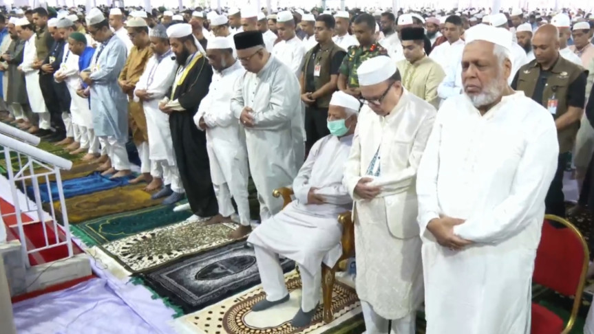 ধর্মীয় ভাবগাম্ভীর্যের মধ্য দিয়ে রাজধানীর জাতীয় ঈদগাহ মাঠে পবিত্র ঈদুল আজহার প্রধান জামাত অনুষ্ঠিত হয়েছে। এই জামাতে উপস্থিত ছিলেন অন্তর্বর্তী সরকারের প্রধান উপদেষ্টা ড. মুহাম্মদ ইউনূস। নামাজ শেষে ঈদগাহে মুসল্লিদের সঙ্গে শুভেচ্ছা বিনিময় করেন তিনি।
