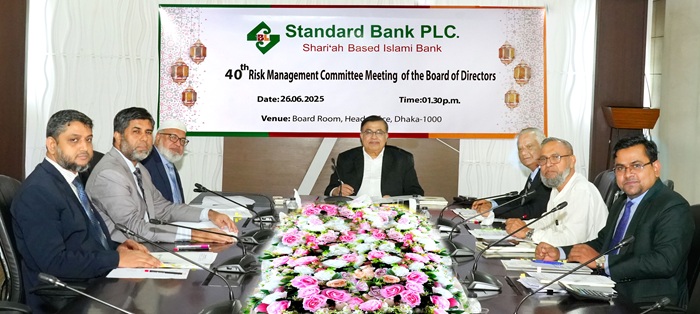 নিজস্ব প্রতিবেদকঃ শরি‘আহ্ ভিত্তিক স্ট্যান্ডার্ড ব্যাংক পিএলসি. এর রিস্ক ম্যানেজমেন্ট কমিটির ৪০তম সভা ২৬ জুন ২০২৫ তারিখে ঢাকায় ব্যাংকের প্রধান কার্যালয়ের বোর্ডরুমে অনুষ্ঠিত হয়।
