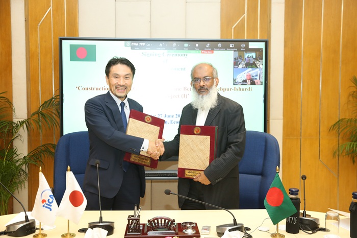 নিজস্ব প্রতিবেদকঃ জয়দেবপুর থেকে ঈশ্বরদী পর্যন্ত ডুয়েল গেজ ডাবল লাইন নির্মাণ প্রকল্পে অর্থায়নের জন্য বাংলাদেশ সরকারের সাথে ঋণচুক্তি স্বাক্ষর করেছে জাপান ইন্টারন্যাশনাল কো-অপারেশন এজেন্সি (জাইকা)।