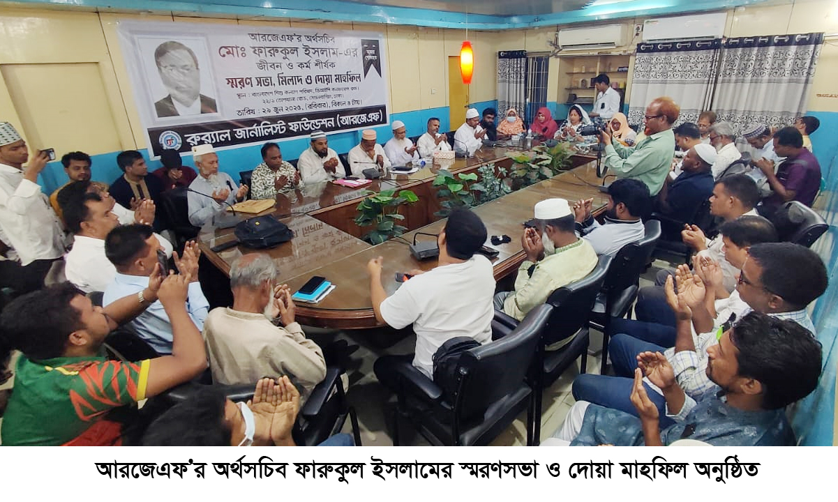 নিজস্ব প্রতিবেদকঃ রুর্যাল জার্নালিস্ট ফাউন্ডেশন (আরজেএফ) এর অর্থ সচিব ফারুকুল ইসলাম এর জীবন ও কর্ম শীর্ষক আলোচনা সভা, মিলাদ ও দোয়া মাহফিল ২৯ জুন রবিবার বিকেলে বাংলাদেশ শিশু কল্যাণ পরিষদ ভিআইপি কনফারেন্স রুমে অনুষ্ঠিত হয়।