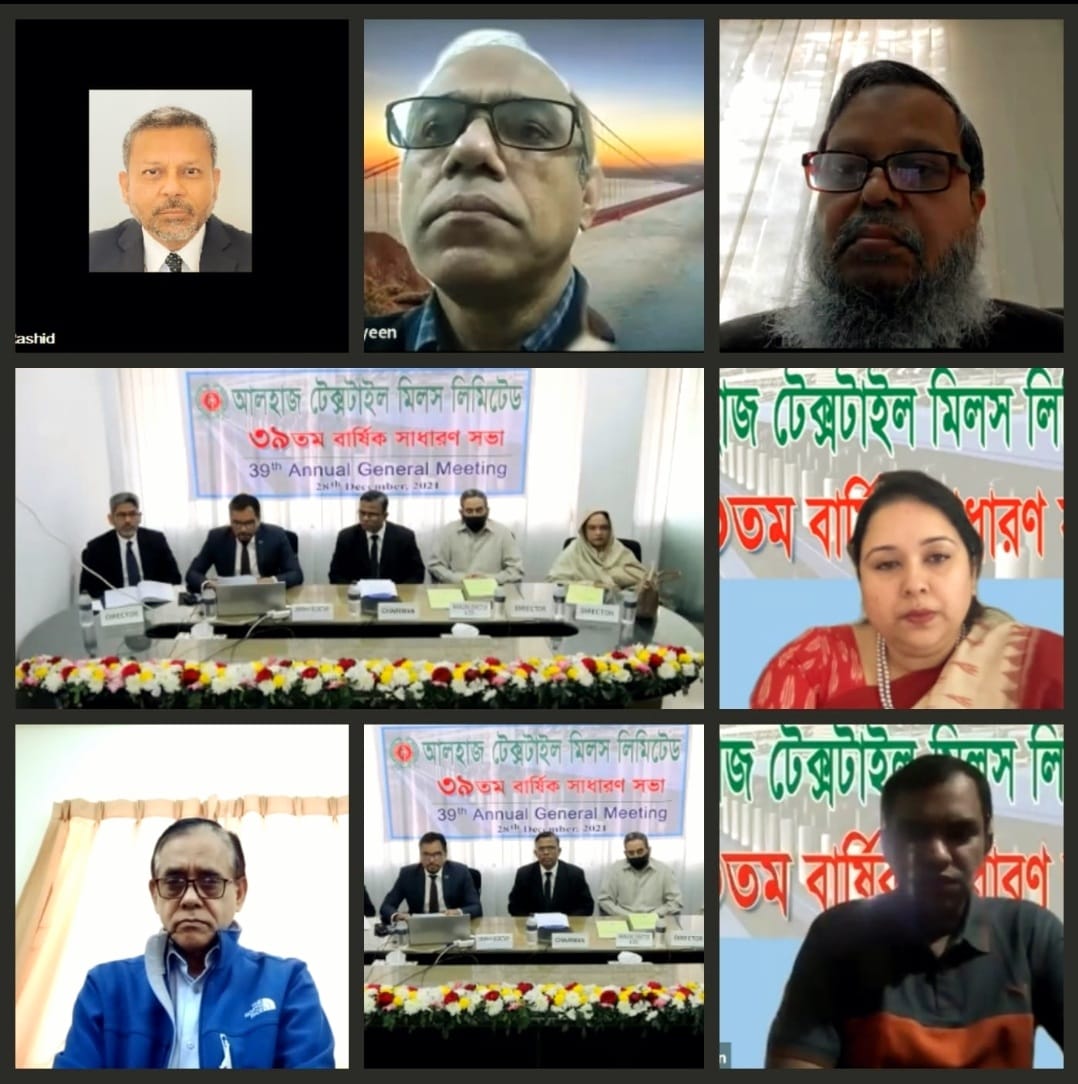 ২৮শে ডিসেম্বর ২০২১ইং তারিখে শেয়ারবাজারের তালিকাভুক্ত কোম্পানী আলহাজ টেক্সটাইল মিলস লিমিটেড এর ৩৯তম বার্ষিক সাধারণ সভা সকাল ১০.৩০ টায় ডিজিটাল প্লাটফর্মে অনুষ্ঠিত হয়।