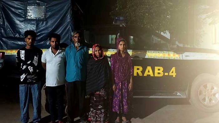 বুধবার (২ জুলাই) র্যাব-১৩ এর সদস্যরা গোপন সূত্রে খবর পেয়ে সাভারের র্যাব-৪ ক্যাম্পের সদস্যদের সহায়তায় ঢাকার আশুলিয়া থানার নিশ্চিন্তপুর এলাকার কয়েকটি বাড়ি থেকে সাত্তার আলী, আখতারুল মিয়া, মোছা. মনি বেগম, মতলব আলী, লতিফুর বেগমসহ পাঁচজনকে গ্রেপ্তার করে।