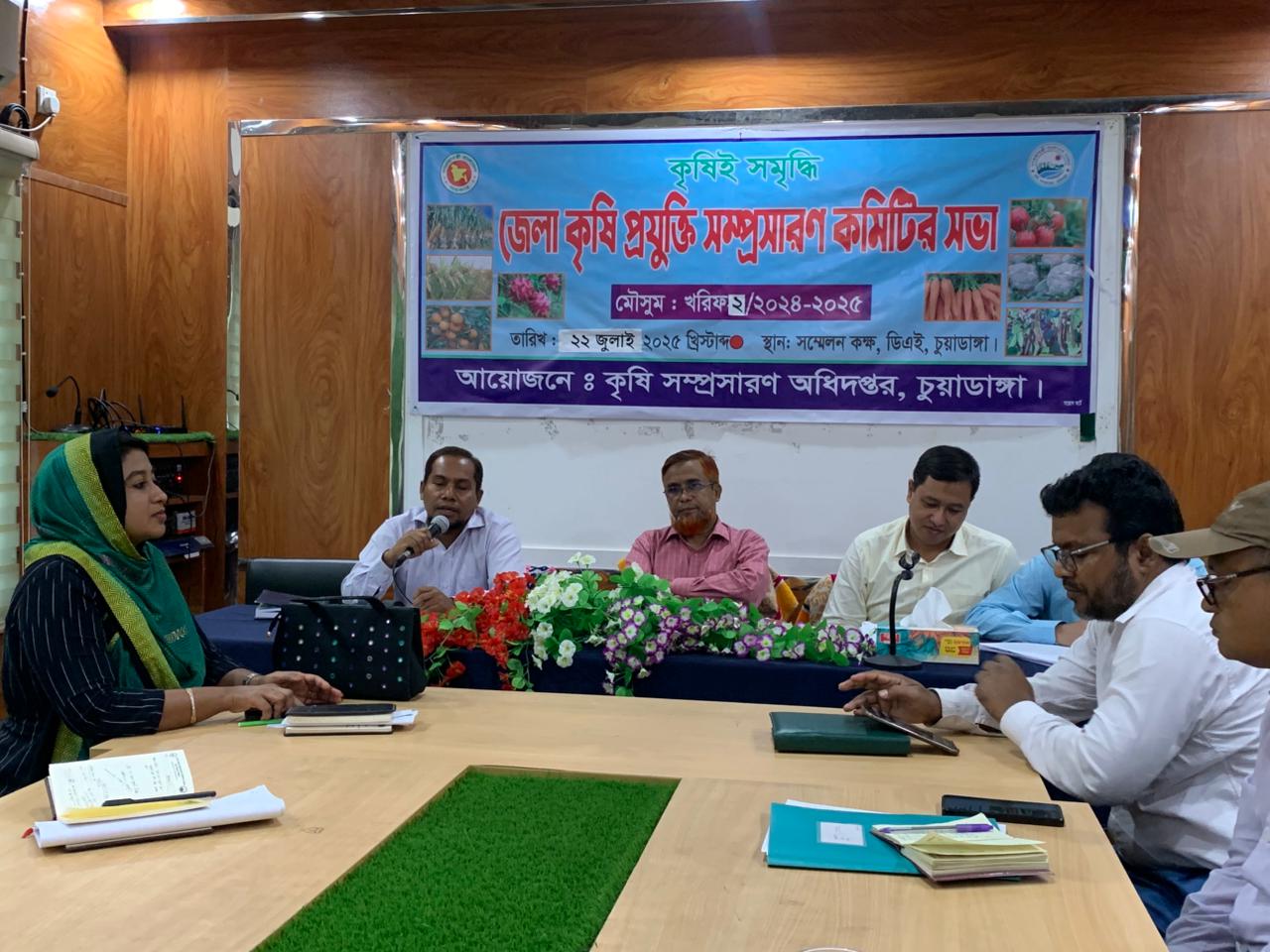 চুয়াডাঙ্গা প্রতিনিধি: চুয়াডাঙ্গা জেলা কৃষি সম্প্রসারণ অধিদপ্তরের আয়োজনে জেলা কৃষি প্রযুক্তি সম্প্রসারণ কমিটির এক গুরুত্বপূর্ণ সভা অনুষ্ঠিত হয়েছে। ২২ জুলাই ২০২৫, মঙ্গলবার সকাল ১০টায় উপজেলা কৃষি সম্প্রসারণ অধিদপ্তরের সম্মেলন কক্ষে এ সভা অনুষ্ঠিত হয়। সভায় সভাপতিত্ব করেন কৃষি সম্প্রসারণ অধিদপ্তরের উপ-পরিচালক মোঃ মাসুদুর রহমান সরকার।