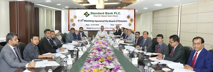 নিজস্ব প্রতিবেদকঃ শরি‘আহ্ ভিত্তিক স্ট্যান্ডার্ড ব্যাংক পিএলসি. এর পরিচালনা পর্ষদের ৪১৪তম (বিশেষ) সভা, ৩১ জুলাই ২০২৫ তারিখে ঢাকায় ব্যাংকের প্রধান কার্যালয়ের বোর্ডরুমে অনুষ্ঠিত হয়।