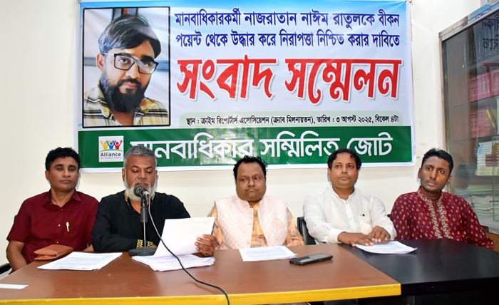 নিজস্ব প্রতিবেদকঃ আজ ৩ আগস্ট রবিবার বিকেল ৪টায় বাংলাদেশ ক্রাইম রিপোর্টার্স অ্যাসোসিয়েশন (ক্র্যাব)-এ আয়োজিত এক সংবাদ সম্মেলনে মানবাধিকার সম্মিলিত জোটের মুখপাত্র মো. মঞ্জুর হোসেন ঈসা নাজরাতান নাঈম আহমেদ (রাতুল)-এর মানবাধিকার লঙ্ঘনের একটি গুরুতর অভিযোগ তুলে ধরেন। তিনি জানান, ৩১ জুলাই ২০২৫, নাজরাতান নাঈমকে তার পরিবারের সদস্যরা জোরপূর্বক ‘বীকন পয়েন্ট’ মাদক নিরাময় কেন্দ্রে নিয়ে গিয়ে আটকে রেখেছে এবং সেখানে তাকে শারীরিক ও মানসিক নির্যাতন করা হচ্ছে। তার অভিযোগ, বীকন পয়েন্টটি মোটা অংকের অর্থের বিনিময়ে একজন সুস্থ ব্যক্তির জীবন নিয়ে ছিনিমিনি খেলার অপচেষ্টা করছে।