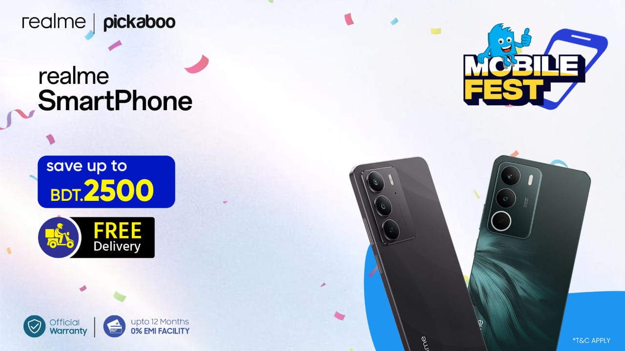 পিকাবু থেকে রিয়েলমির যেকোনো ডিভাইস কেনার ক্ষেত্রে ক্রেতা বাজারমূল্য ও ছাড়কৃত মূল্য যাচাই করে নিতে পারবেন। নির্দিষ্ট মডেল ছাড়াও, রিয়েলমির আরও বেশকিছু স্মার্টফোন পিকাবু থেকে আকর্ষণীয় ছাড়ে কেনা যাবে, ক্রেতারা তাদের পছন্দের ডিভাইস খুঁজে নেয়ার ক্ষেত্রে এটাই যথার্থ সময়। অনলাইন শপিং অভিজ্ঞতাকে আরও স্বাচ্ছন্দ্যময়, সাশ্রয়ী ও নিরবচ্ছিন্ন করতেই এই মোবাইলফেস্ট ক্যাম্পেইন নিয়ে এসেছে পিকাবু। সীমিত সময়ের এই সুযোগটি থাকতে থাকতেই অবিশ্বাস্য মূল্যে আপনার পছন্দের রিয়েলমির স্মার্টফোনটি কিনে নিন, এখনই!