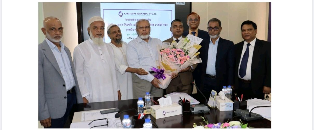 নিজস্ব প্রতিবেদক: ইউনিয়ন ব্যাংক পিএলসি, এর সম্মানিত পরিচালক ড. শহিদুল ইসলাম জাহীদ ঢাকা বিশ্ববিদ্যালয়ের ব্যাংকিং এন্ড ইন্স্যুরেন্স বিভাগের চেয়ারম্যান নিযুক্ত হওয়ায় ব্যাংকের সম্মানিত পরিচালনা পর্ষদের পক্ষ থেকে অভিনন্দন ও শুভেচ্ছা জানানো হয়।
