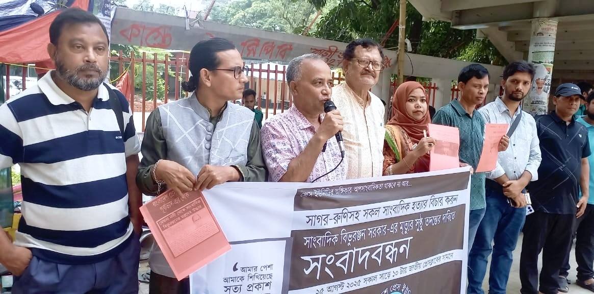 নিজস্ব প্রতিবেদকঃ সাংবাদিকদের রুটি-রুজী-জীবনের নিরাপত্তা ও বিভুরঞ্জনের মৃত্যুর সুষ্ঠু তদন্ত এবং সাগর-রুণিসহ সকল সাংবাদিক হত্যার বিচারের দাবিতে সংবাদবন্ধন অনুষ্ঠিত হয়েছে।