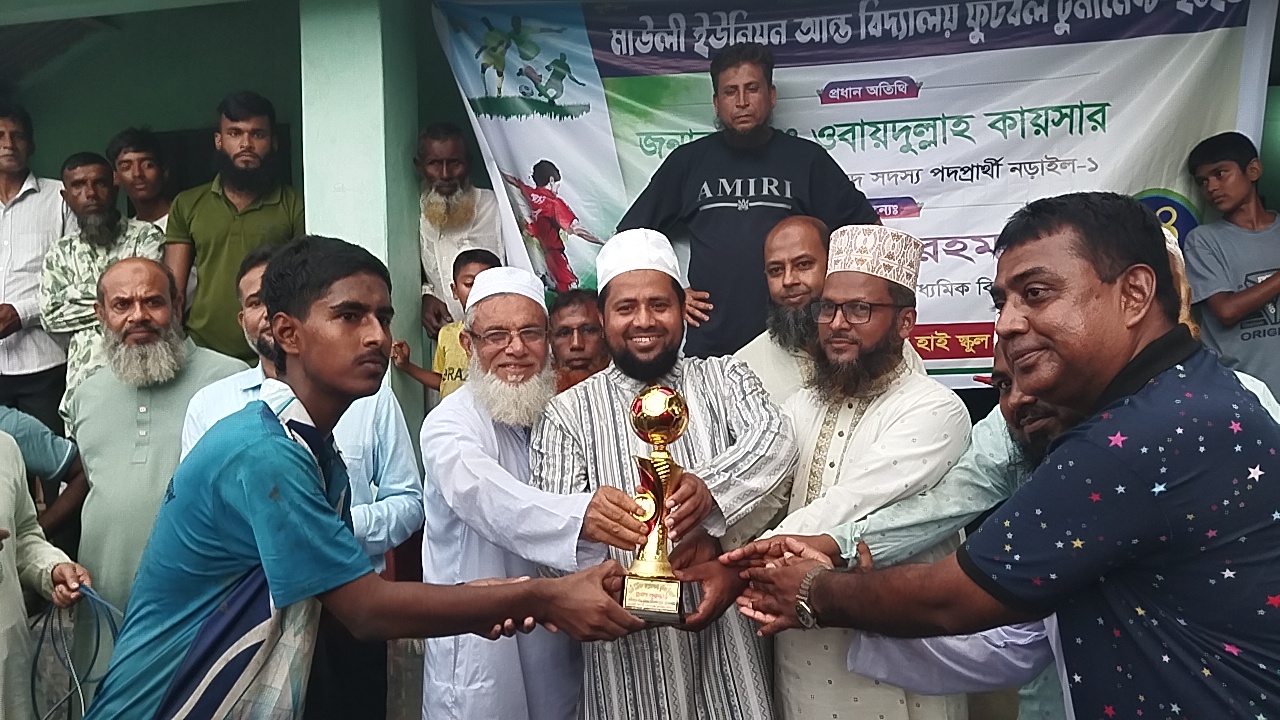 নড়াইল প্রতিনিধিঃ নড়াইলের কালিয়া উপজেলা ৪ নং মাউলী ইউনিয়নে ২৪ আগষ্ট (রবিবার) বিকাল ৪টায় মাউলী পঞ্চপল্লী নিম্ন মাধ্যমিক বিদ্যালয় মাঠ প্রাঙ্গণে ৪ দলিয় ফুটবল টুর্নামেন্ট অনুষ্ঠিত হয়।
