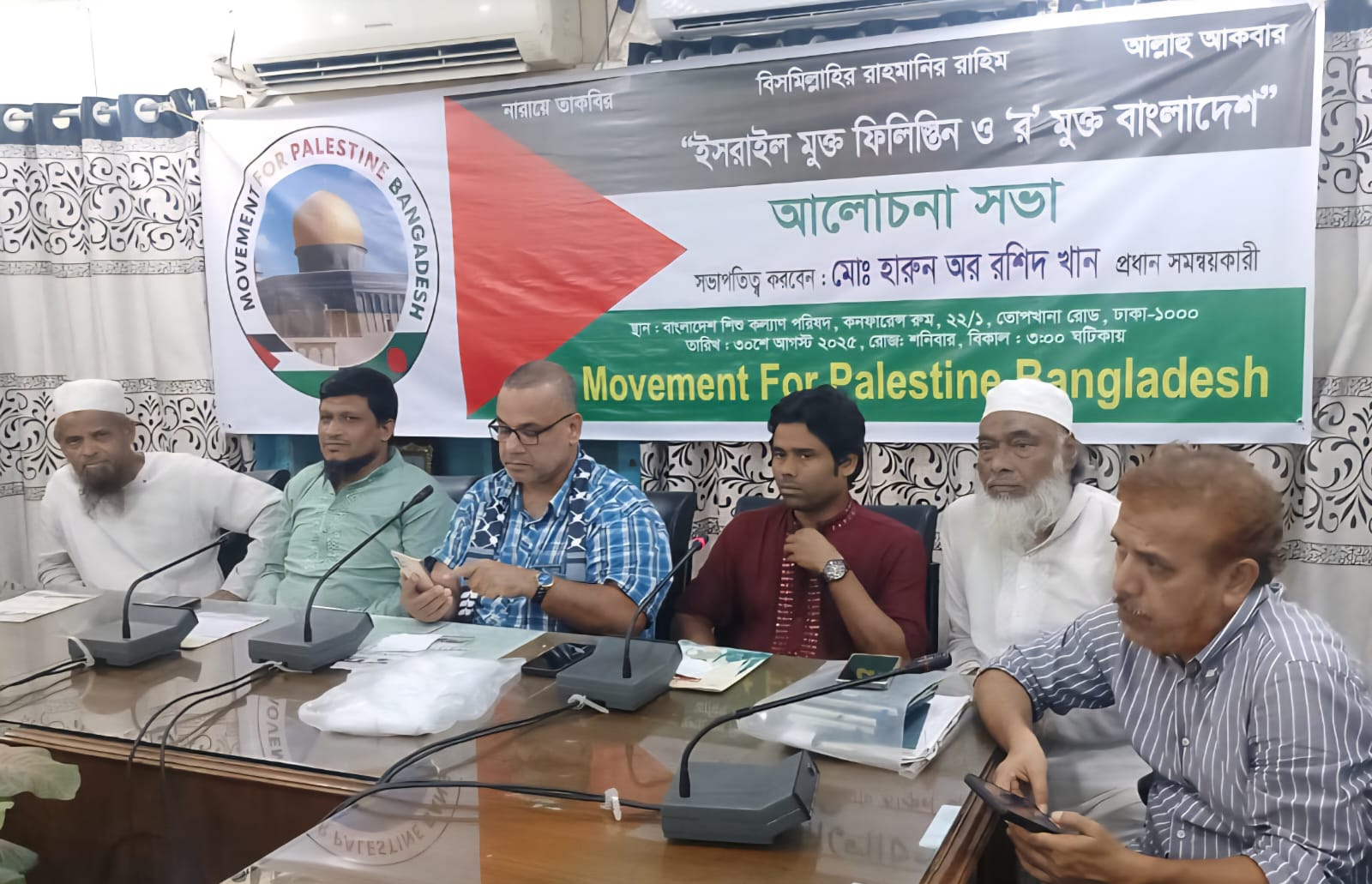 নিজস্ব প্রতিবেদকঃ ৩০ আগস্ট ২০২৫ শনিবার বিকাল ৩ টায় ২২/১, তোপখানা রোড, ঢাকাস্থ বাংলাদেশ শিশু কল্যাণ পরিষদ কনফারেন্স রুমে মুভমেন্ট ফর প্যালেস্টাইন বাংলাদেশ এর উদ্যোগে “ইসরাইল মুক্ত ফিলিস্তিন ও ‘র’ মুক্ত বাংলাদেশ” শীর্ষক আলোচনা সভা অনুষ্ঠিত হয়।