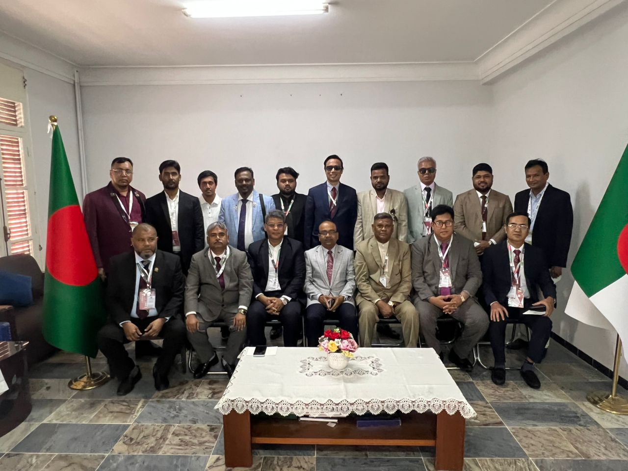 আলজিয়ার্স, ০৭ সেপ্টেম্বর ২০২৫ বাংলাদেশ-আলজেরিয়া বিজনেস ফোরামের তেরো সদস্যের একটি প্রতিনিধি দল ০৬ সেপ্টেম্বর বাংলাদেশ দূতাবাস, আলজিয়ার্স পরিদর্শন করেন। পরিদর্শনকালে, ফোরামের সদস্যবৃন্দ আলজেরিয়ায় নিযুক্ত বাংলাদেশের মান্যবর রাষ্ট্রদূত জনাব মো. নাজমুল হুদার সাথে সৌজন্য সাক্ষাত করেন এবং আলজেরিয়াতে বাংলাদেশের রপ্তানি সুযোগ বৃদ্ধিসহ ব্যবসা-বাণিজ্য সম্প্রসারণের সম্ভাবনা নিয়ে মতবিনিময় করেন। মতবিনিময়কালে প্রতিনিধিদল বাংলাদেশের বাজারে আলজেরিয়ার পণ্য সরবরাহ বৃদ্ধির পাশাপাশি আলজেরিয়াতে বাংলাদেশের রপ্তানিপণ্য বৃদ্ধির নানা দিক সম্পর্কে আলোকপাত করেন। উক্ত আলোচনায় বাংলাদেশ-আলজেরিয়ার মধ্যকার ব্যবসায়িক সম্পর্ক আরও জোরদারের জন্য বিভিন্ন কার্যক্রমের প্রস্তাব করা হয়। এছাড়াও, কৃষি ও কৃষি-শিল্প, তৈরী পোষাক, জ্বালানী, জাহাজ নির্মাণ শিল্প, ফল রপ্তানী, খেলাধুলা, তথ্যপ্রযুক্তি, জনশক্তি রপ্তানী, সাংস্কৃতিক বিনিময়সহ নানা বিষয়ে বাংলাদেশ এবং আলজেরিয়ার মধ্যে বিদ্যমান ব্যবসায়িক সম্পর্ক সম্প্রসারণের সম্ভাবনা নিয়ে বিস্তারিত আলোচনা হয়, যা আগামী দিনগুলোতে দুই দেশের মধ্যে নতুন ব্যবসা এবং বিনিয়োগের সুযোগ সৃষ্টি করবে বলে আশা প্রকাশ করা যাচ্ছে।আলজেরিয়ায় নিযুক্ত বাংলাদেশের মান্যবর রাষ্ট্রদূত জনাব মো. নাজমুল হুদা বাংলাদেশ ও আলজেরিয়ার মধ্যকার দ্বিপাক্ষিক সম্পর্ক উন্নয়নে বাংলাদেশ-আলজেরিয়া বিজনেস ফোরামের অধিকতর সক্রিয় ভূমিকার উপর গুরুত্বারোপ করেন এবং ভবিষ্যতে ফোরামের এ সম্পর্কিত বিভিন্ন কার্যক্রম অব্যাহত রাখার আহ্বান জানান। রাষ্ট্রদূত আরও বলেন যে, এ ধরনের আলোচনা এবং সহযোগিতামূলক বিভিন্ন উদ্যোগ ভবিষ্যতে দুই দেশের সম্পর্ককে আরও শক্তিশালী করতে অগ্রণী ভূমিকা পালন করবে।উল্লেখ্য যে, বাংলাদেশ-আলজেরিয়া বিজনেস ফোরামের সভাপতি মোহাম্মদ নূরুল মোস্তফা ও সাধারণ সম্পাদক আলী হায়দার চৌধুরীসহ ফোরামের তেরো জন সদস্য বর্তমানে আলজেরিয়ায় বাংলাদেশের ব্যবসা ও বিনিয়োগ সম্প্রসারণের সম্ভাব্যতা যাচাই এবং Intra-African Trade Fair (IATF2025) -এ অংশগ্রহণের নিমিত্ত আলজেরিয়াতে ভ্রমণ করছেন। ব্যবসায়ী প্রতিনিধিদল তাদের সফরকালে স্থানীয় ব্যবসায়ী ও উদ্যোক্তাদের সাথে সম্ভাব্য সহযোগিতার ক্ষেত্রে চিহ্নিত করার পাশাপাশি আলজেরীয় সরকারের উচ্চপর্যায়ের কর্মকর্তাদের সঙ্গে মতবিনিময় করেন।