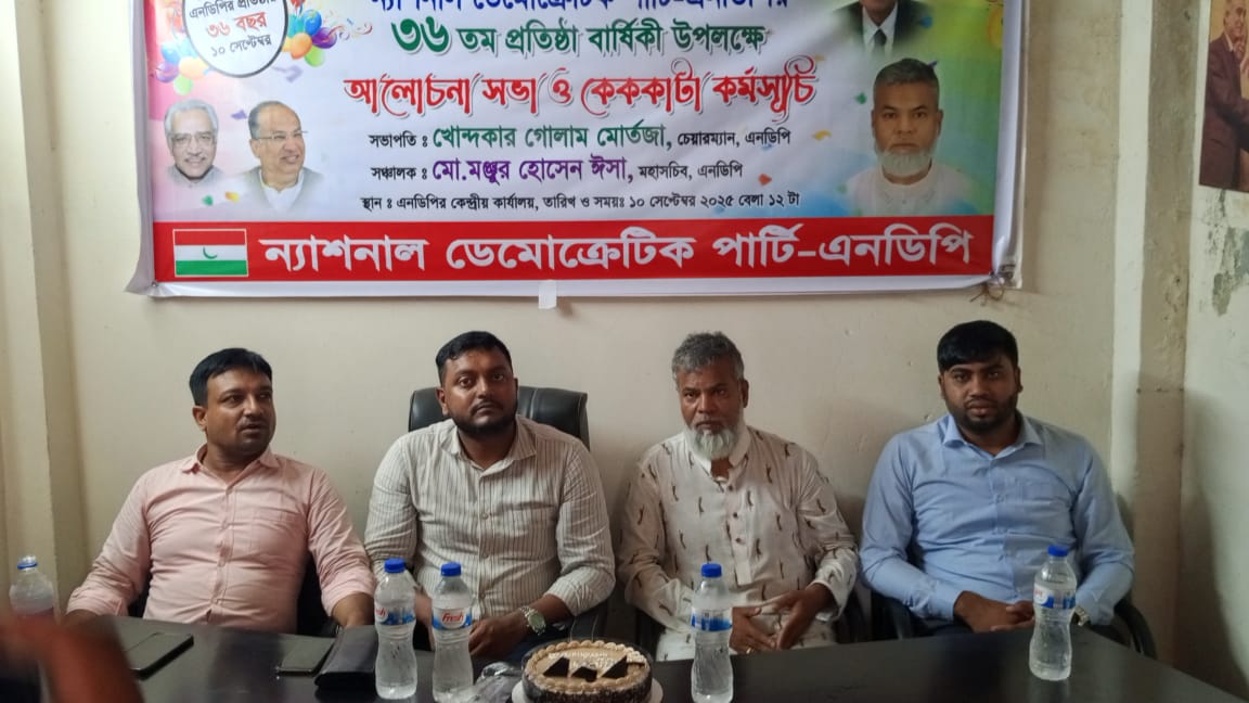 ঢাকা, ১০ সেপ্টেম্বর ২০২৫, বুধবার – নানা কর্মসূচির মধ্য দিয়ে ন্যাশনাল ডেমোক্রেটিক পার্টি -এনডিপি তাদের ৩৬ তম প্রতিষ্ঠা বার্ষিকী উদযাপন করেছে।