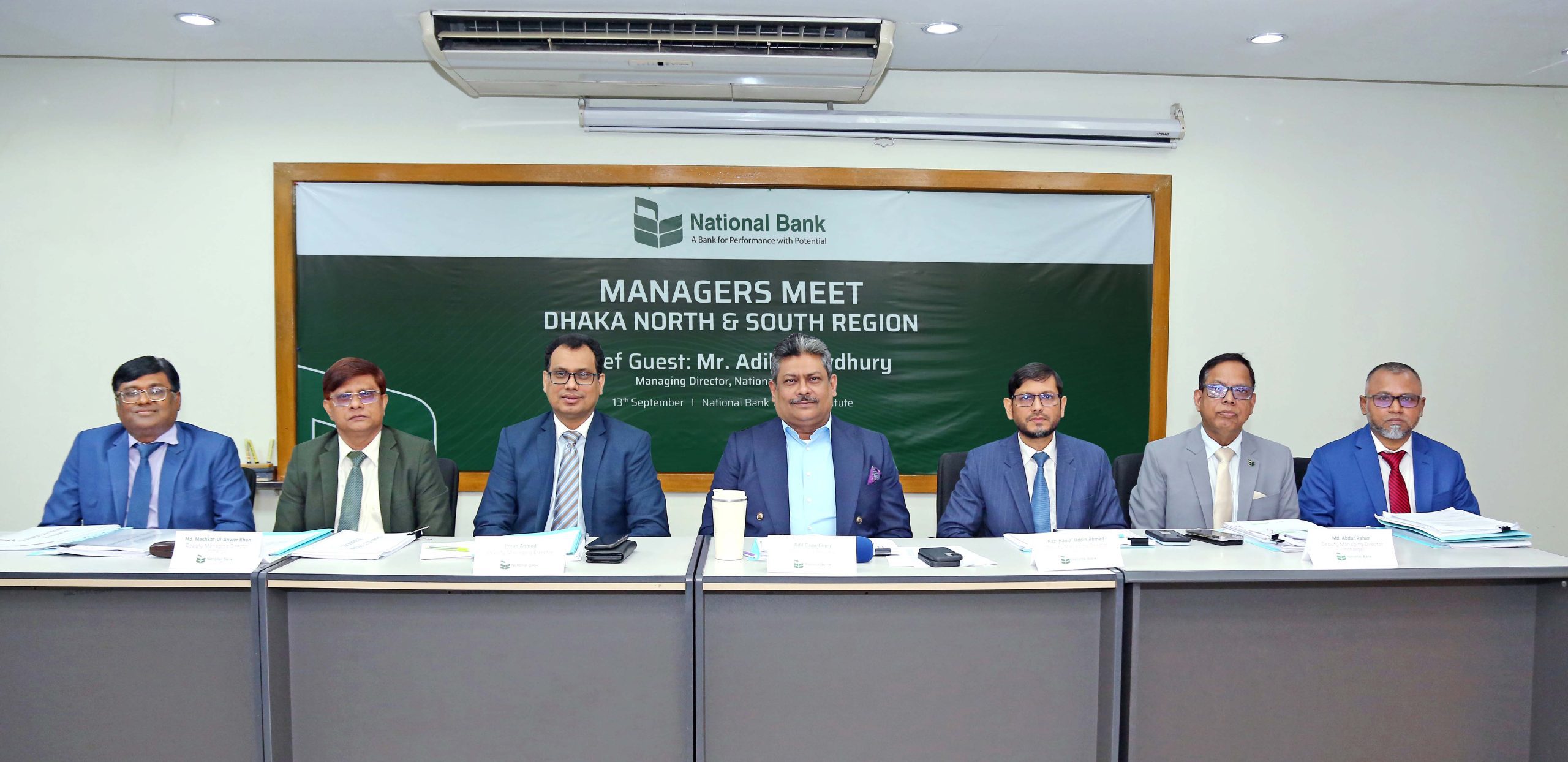 ন্যাশনাল ব্যাংক পিএলসি ১৩ সেপ্টেম্বর ২০২৫ তারিখে ঢাকা উত্তর ও দক্ষিণ অঞ্চলের শাখা ব্যবস্থাপকদের অংশগ্রহণে “ম্যানেজার্স মিট” আয়োজন করে। শাখার সার্বিক কর্মসম্পাদনা পর্যালোচনা এবং ভবিষ্যৎ প্রবৃদ্ধি ও উৎকর্ষ সাধনের কৌশল নির্ধারণই ছিল সভার মূল উদ্দেশ্য। অনুষ্ঠানে প্রধান অতিথি হিসেবে উপস্থিত ছিলেন ন্যাশনাল ব্যাংক পিএলসি’র ব্যবস্থাপনা পরিচালক আদিল চৌধুরী।