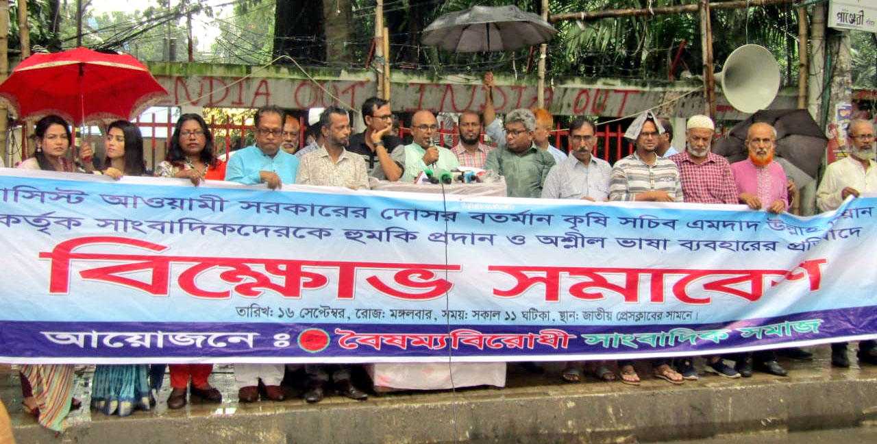 সমাবেশে সভাপতিত্ব করেন সংগঠনের প্রধান সমন্বয়ক জাকির হোসেন এবং সঞ্চালনা করেন সমন্বয়ক এস এম তাজুল ইসলাম। বক্তারা অভিযোগ করেন, বিভিন্ন জাতীয় দৈনিকে সার আমদানি নিয়ে সরকারি অর্থ লোপাটের সংবাদ প্রকাশিত হওয়ার পর কৃষি সচিব সাংবাদিকদের প্রতি অত্যন্ত ক্ষুব্ধ হন এবং অশ্লীল ভাষায় হুমকি প্রদান করেন।