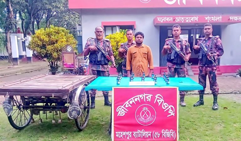 বৃহস্পতিবার দুপুরে মহেশপুর ব্যাটালিয়নের (৫৮ বিজিবি) সহকারী পরিচালক মুন্সী ইমদাদুর রহমান স্বাক্ষরিত এক সংবাদ বিজ্ঞপ্তিতে এ তথ্য জানানো হয়।