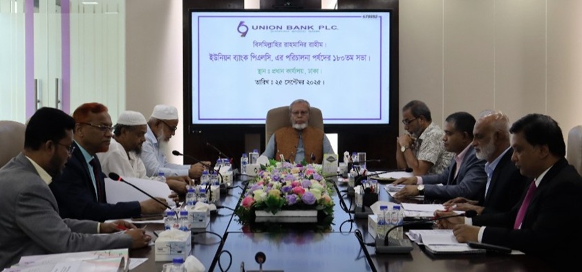 ২৫ সেপ্টেম্বর, ২০২৫ তারিখে ইউনিয়ন ব্যাংক পিএলসি. এর পরিচালনা পর্ষদের ১৮০তম সভা ব্যাংকের প্রধান কার্যালয়, গুলশান-১, ঢাকায় অনুষ্ঠিত হয়। সভায় সভাপতিত্ব করেন ব্যাংকের পরিচালনা পর্ষদের সম্মানিত চেয়ারম্যান জনাব মুঃ ফরীদ উদ্ধসঢ়;দীন আহমদ। সভায় পর্ষদের ঝুঁকি ব্যবস্থাপনা কমিটির চেয়ারম্যান জনাব মোঃ হুমায়ুন কবীর, নিরীক্ষা কমিটির চেয়ারম্যান জনাব শেখ জাহিদুল ইসলাম, এফসিএ, স্বতন্ত্র পরিচালক ড. শহিদুল ইসলাম জাহীদ, জনাব মোহাম্মদ সাইফুল আলম এবং ব্যাংকের ব্যবস্থাপনা পরিচালক ও সিইও জনাব মোঃ হুমায়ুন কবির উপস্থিত ছিলেন। এছাড়াও উপ-ব্যবস্থাপনা পরিচালক জনাব মোহাম্মদ ইকবাল এবং জনাব মিজানুর রহমান কার্যপোলক্ষ্যে সভায় যোগদান করেন। সভায় ব্যাংকের চলমান বিভিন্ন বিষয়ের উপর বিশদভাবে আলোচনা করা হয় এবং ইউনিয়ন ব্যাংকের প্রতি সর্বস্তরের জনগণ আস্থা রাখায় ধন্যবাদ জ্ঞাপন করা হয়।