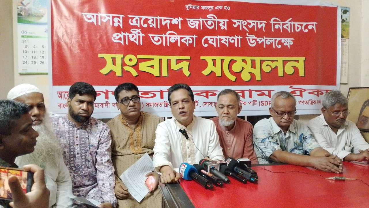 সংবাদ সম্মেলনে গণতান্ত্রিক বাম ঐক্যের পক্ষ থেকে নিম্নবর্ণিত প্রার্থীদের তালিকা ঘোষণা দেওয়া হয়-
