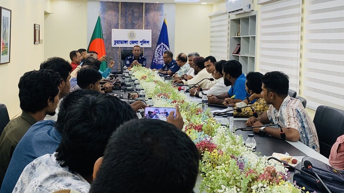 এসময় চুয়াডাঙ্গার পুলিশ সুপার খন্দকার গোলাম মওলা। তিনি জেলার আইনশৃঙ্খলা পরিস্থিতি স্বাভাবিক ও সুন্দর রাখার ক্ষেত্রে জেলা পুলিশের নিরলস প্রচেষ্টার কথা তুলে ধরেন। পুলিশ সুপার তাঁর বক্তব্যে বলেন, "চুয়াডাঙ্গা জেলা পুলিশ সবসময় আইনশৃঙ্খলা উন্নত ও সুন্দর রাখার চেষ্টা করছে। এই প্রক্রিয়ায় আমরা চুয়াডাঙ্গার সাংবাদিক ও জনগণের কাছ থেকে যে সহযোগিতা পেয়েছি, তার জন্য আমি তাদের ধন্যবাদ ও কৃতজ্ঞতা জানাই। সকলের সম্মিলিত প্রচেষ্টায় আমরা একটি নিরাপদ ও শান্তিপূর্ণ পরিবেশ বজায় রাখতে সক্ষম।" তিনি আরও যোগ করেন, জেলা পুলিশ জনমুখী ও দ্রুত সেবাদানে প্রতিশ্রুতিবদ্ধ।